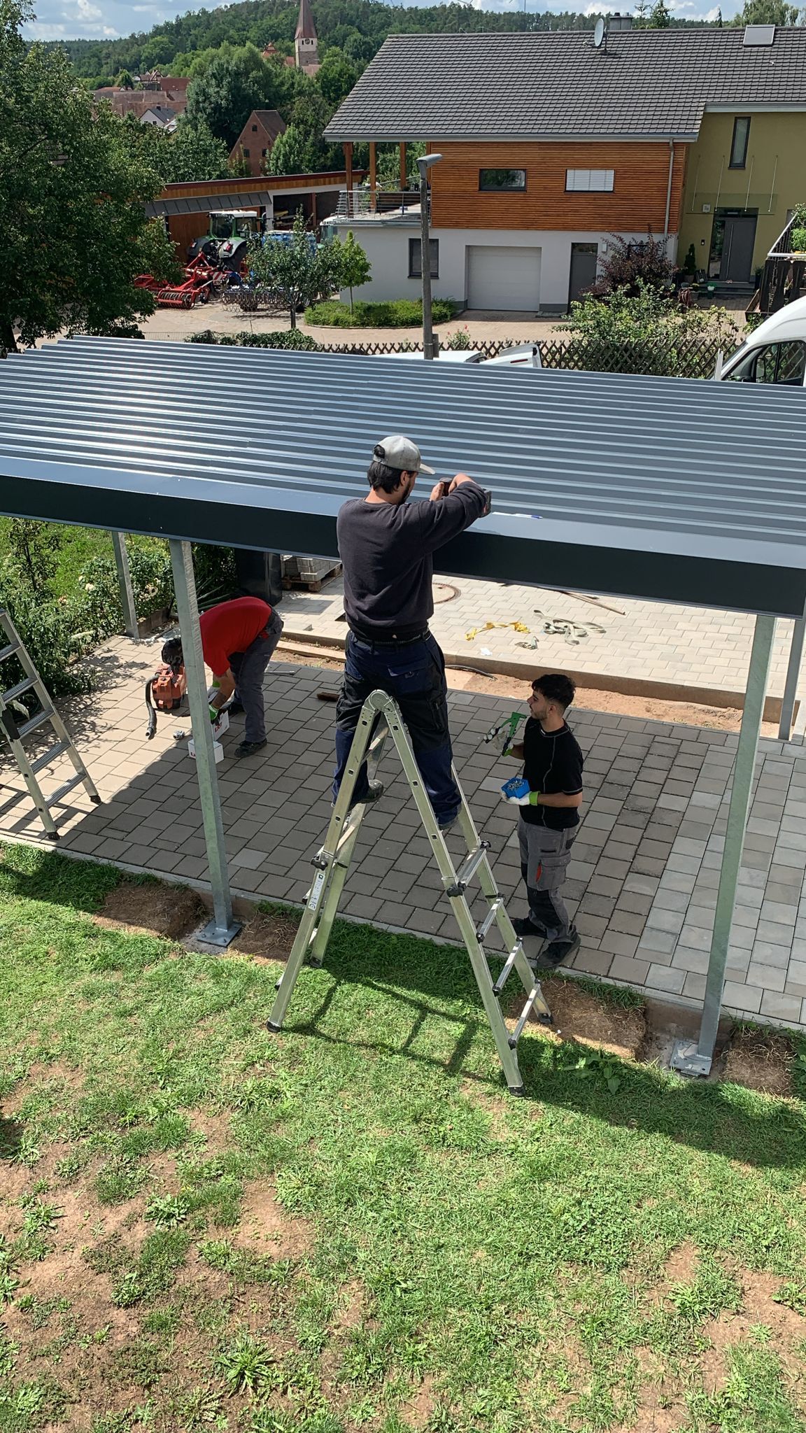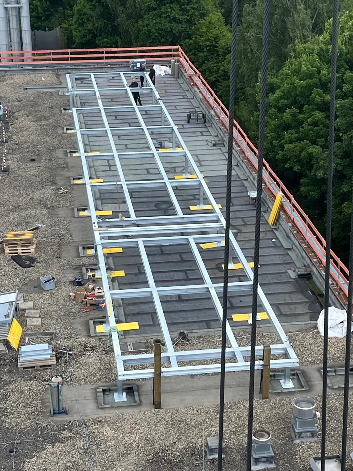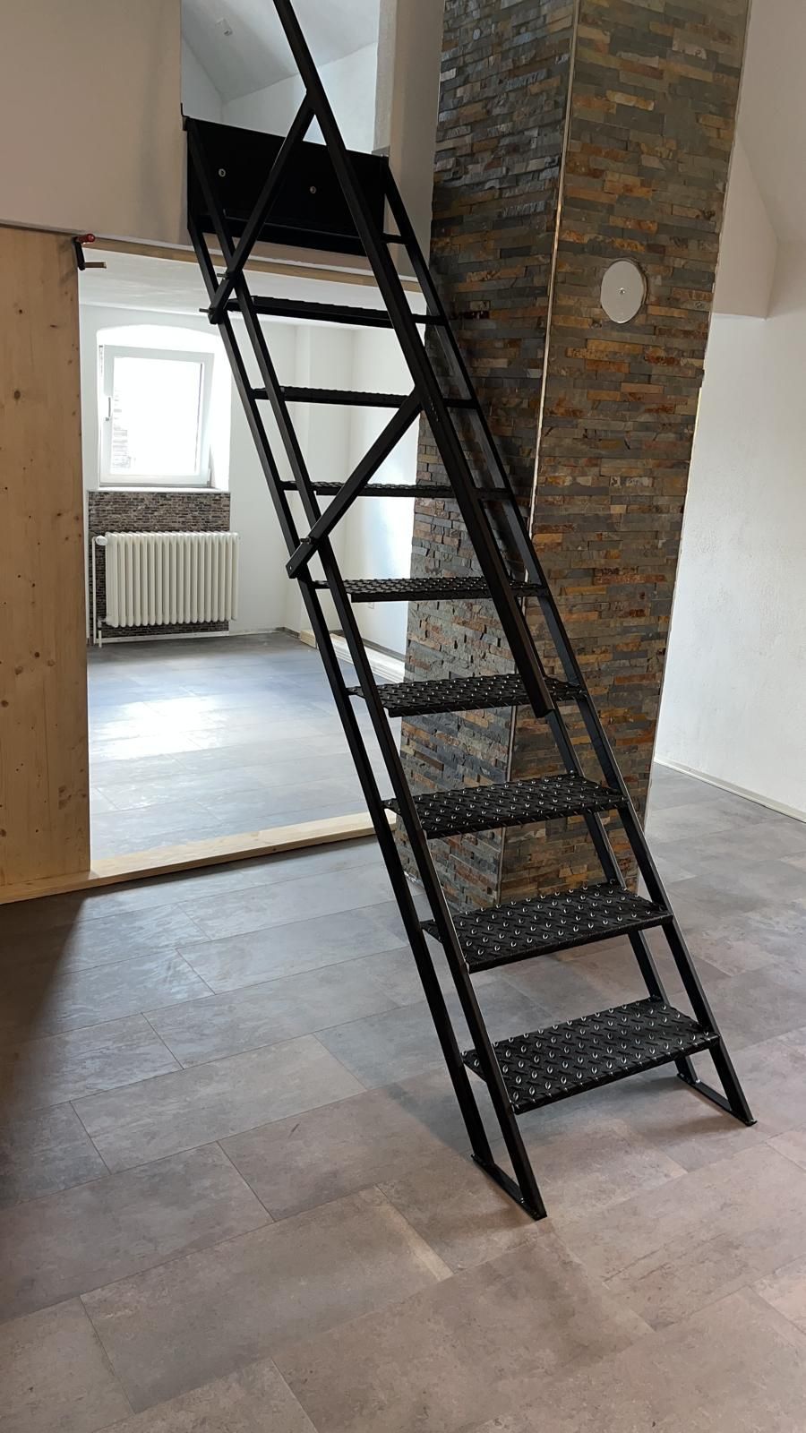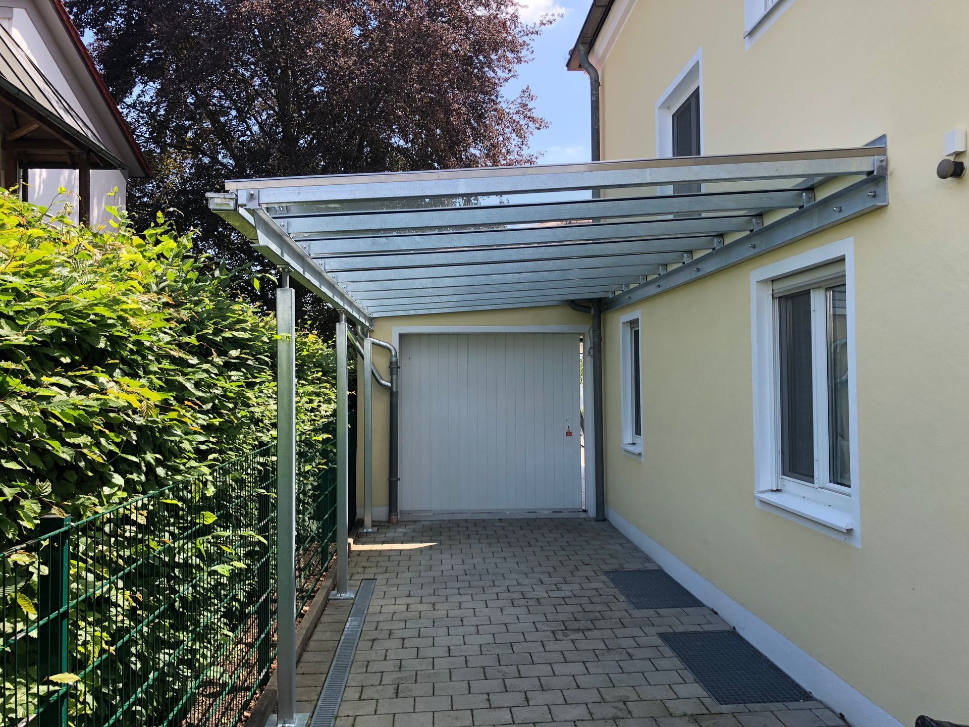 Außenbereich - Podest, gefertigte Stahlkonstruktion, davor Abflussrinne