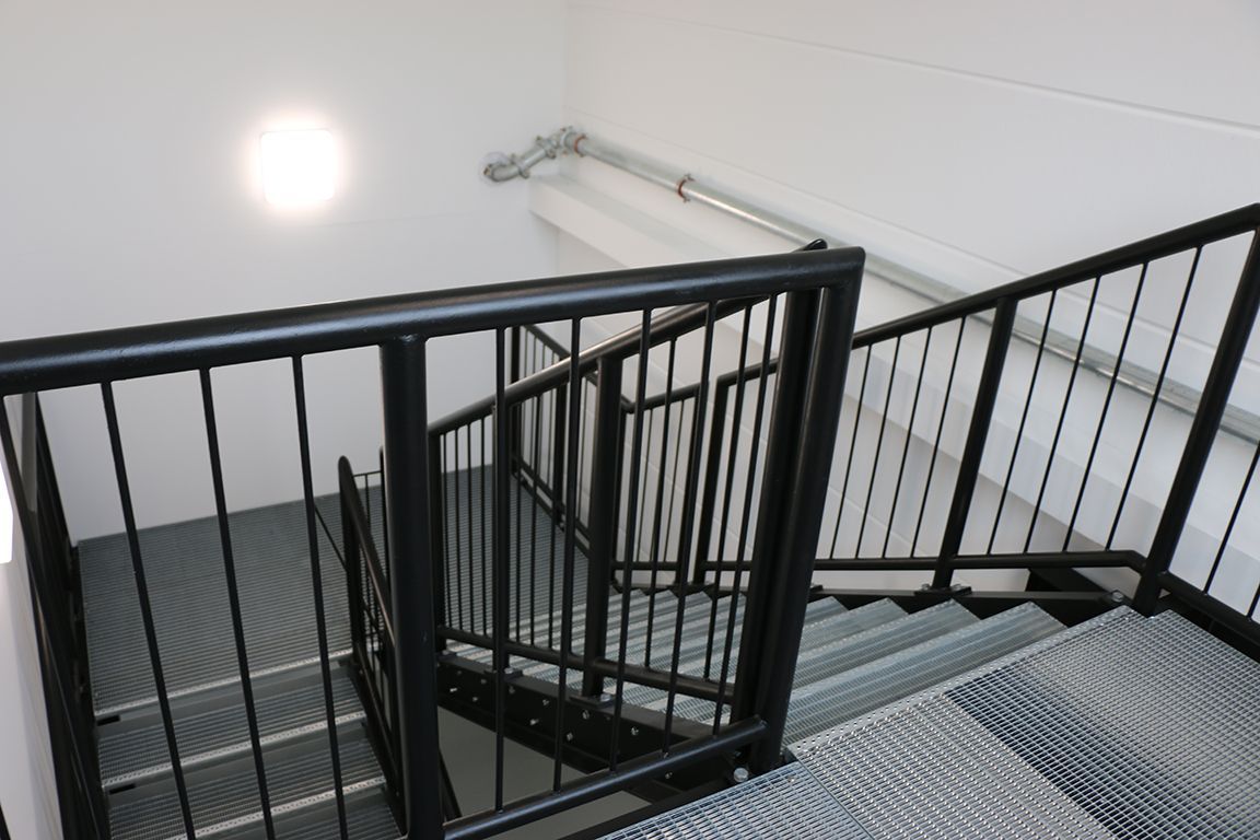 Außenbereich - Podest, gefertigte Stahlkonstruktion, davor Abflussrinne